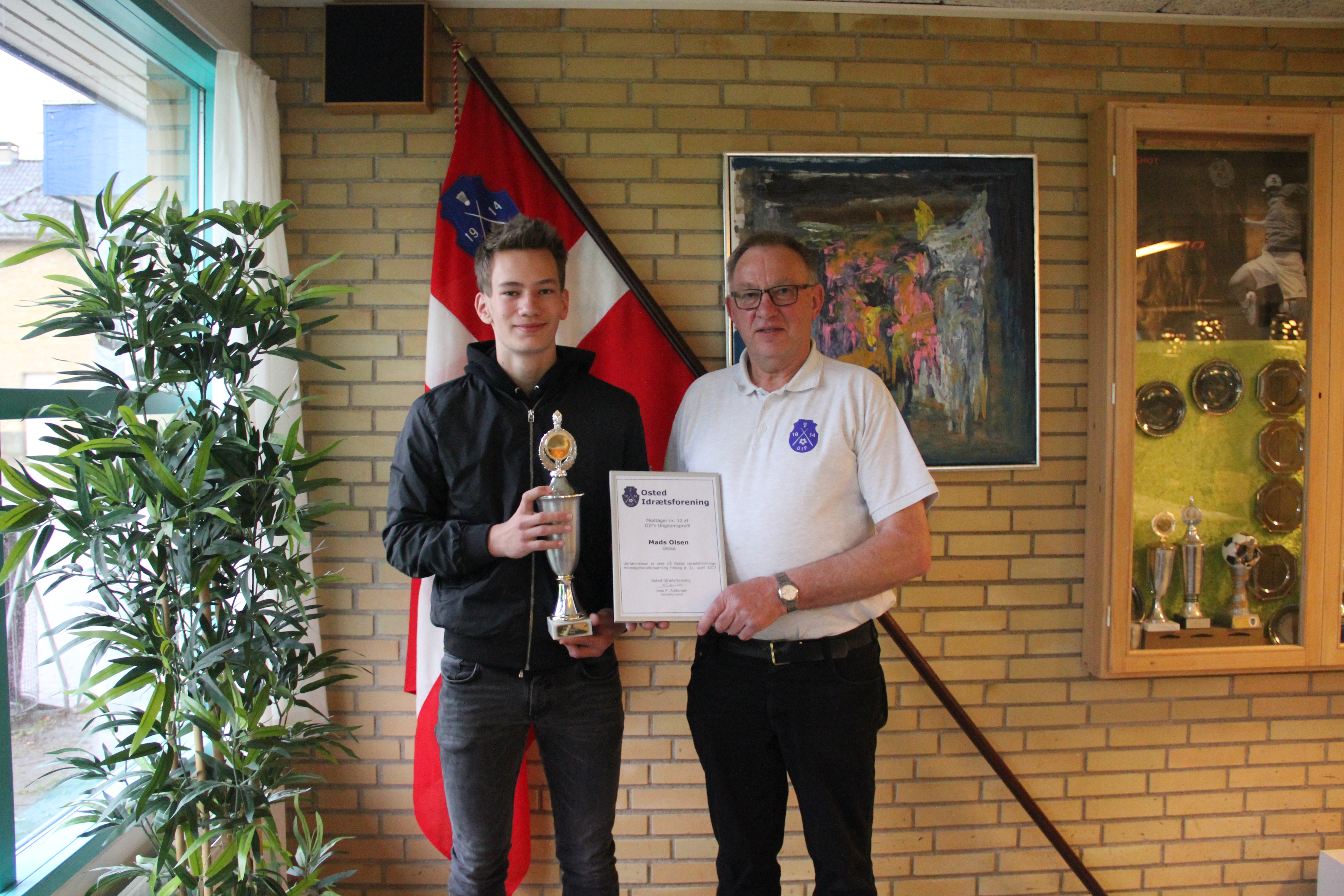 En lidt stolt Mads Olsen sammen med OIF formand Jens Peter Andersen